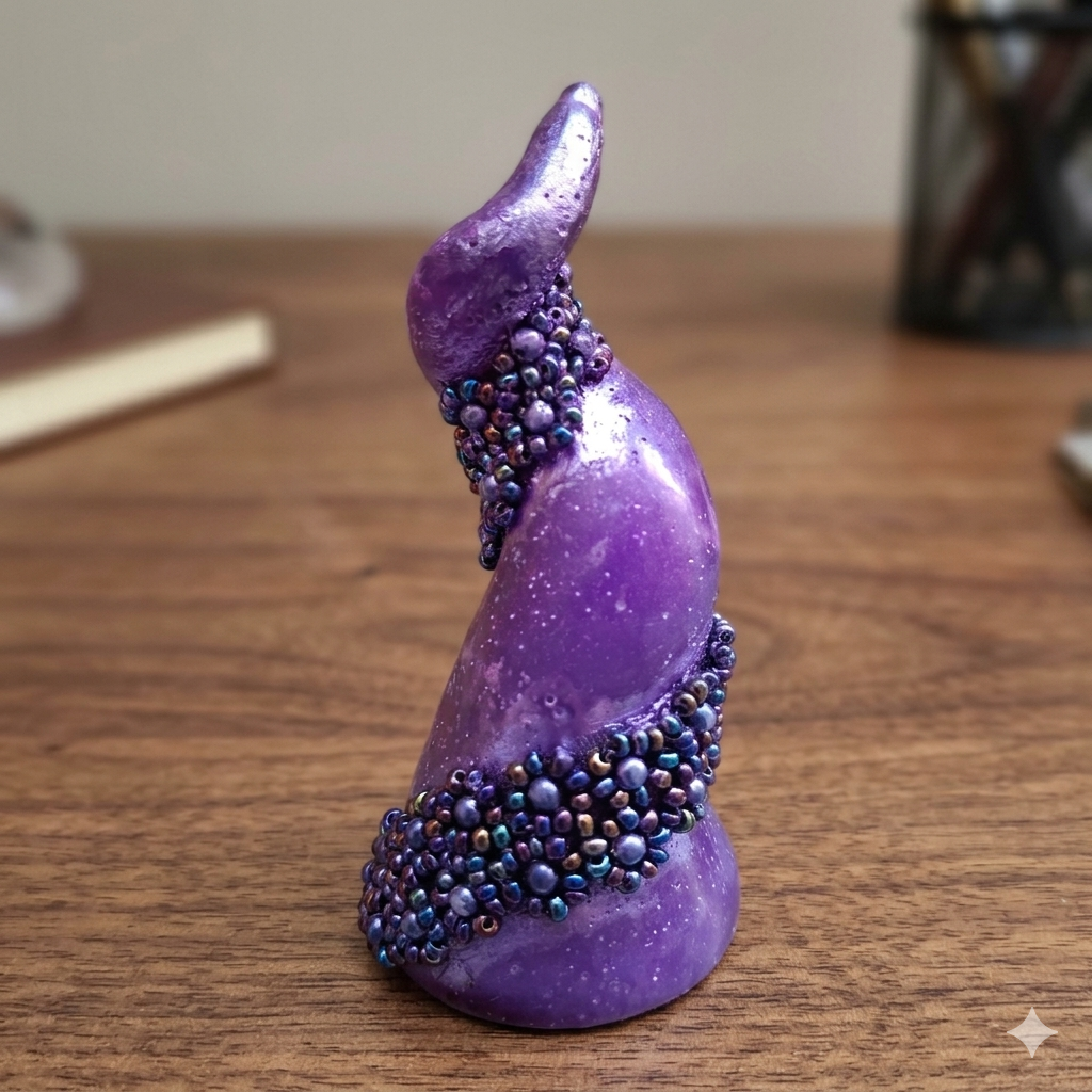 Materiali: Resina artistica e passamaneria sartoriale d'élite.