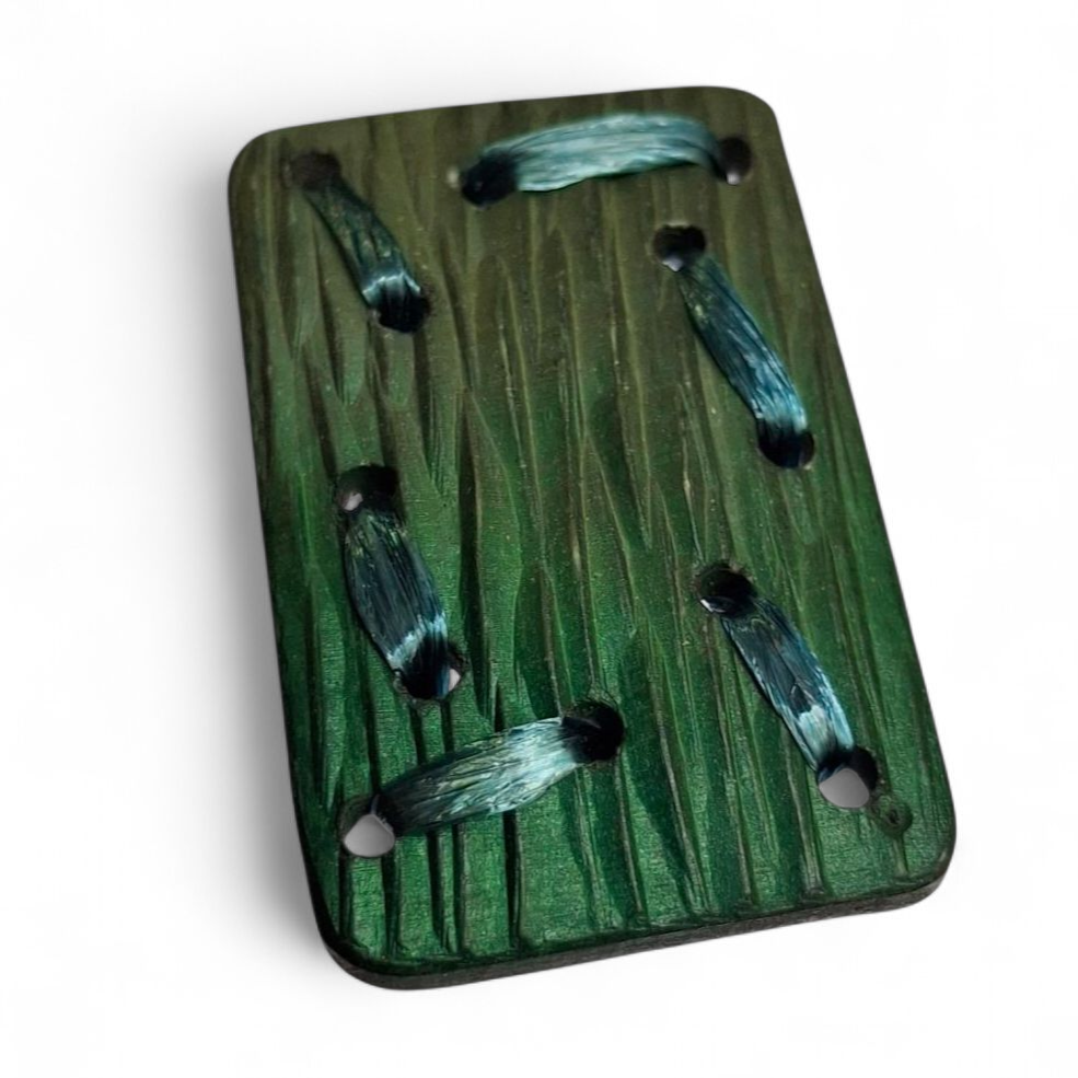 Originali, realizzati in galalite e rafia, con superfici incise ed effetto materico.